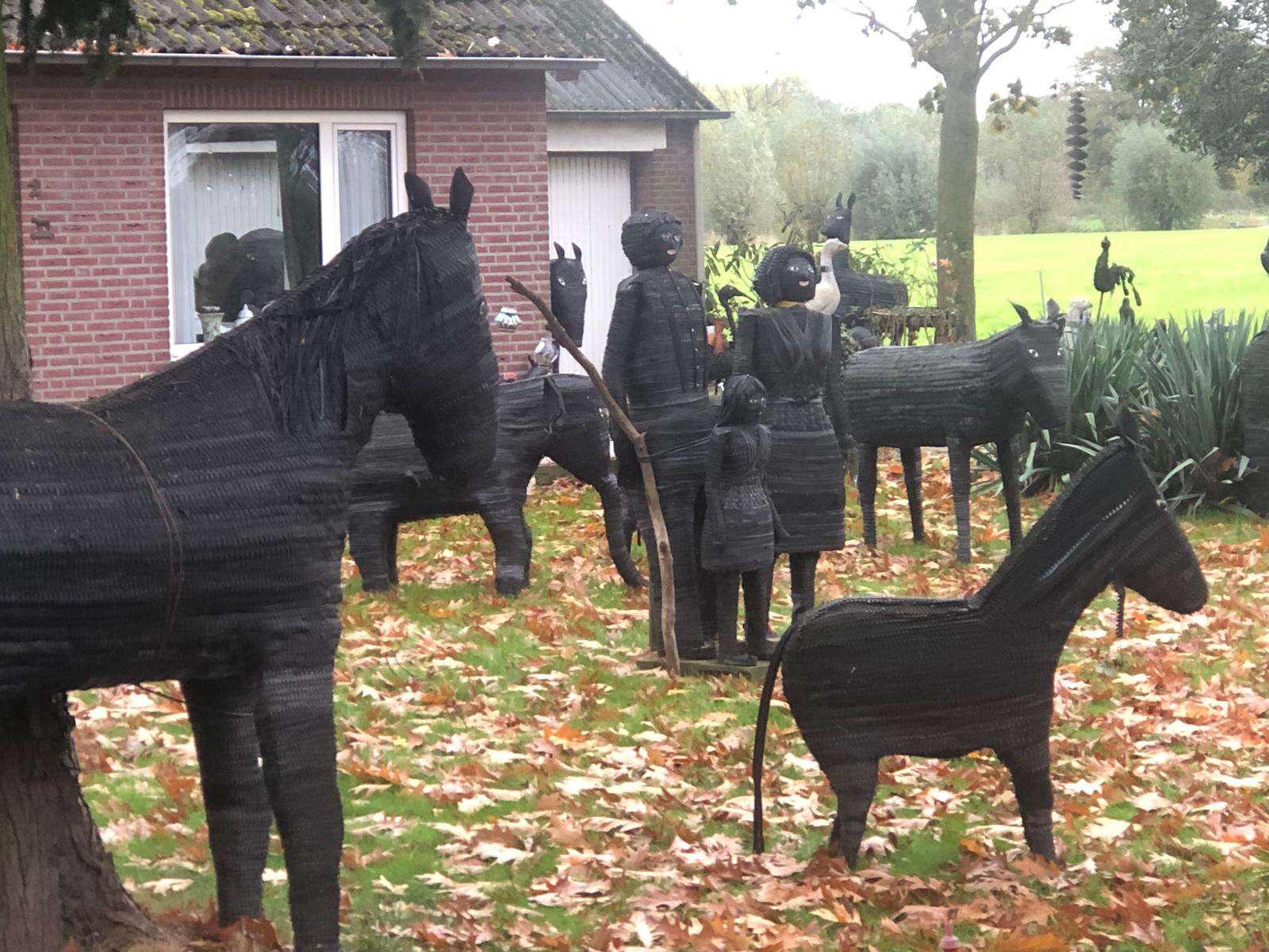 Ook de beeldentuin van Gerda Buijs in Gemonde gaf ons inspiratie tot veel opmerkingen. Van fijn dat je een grote tuin hebt, want waar moet je er anders mee blijven, tot andere suggesties over de achterliggende gedachten.