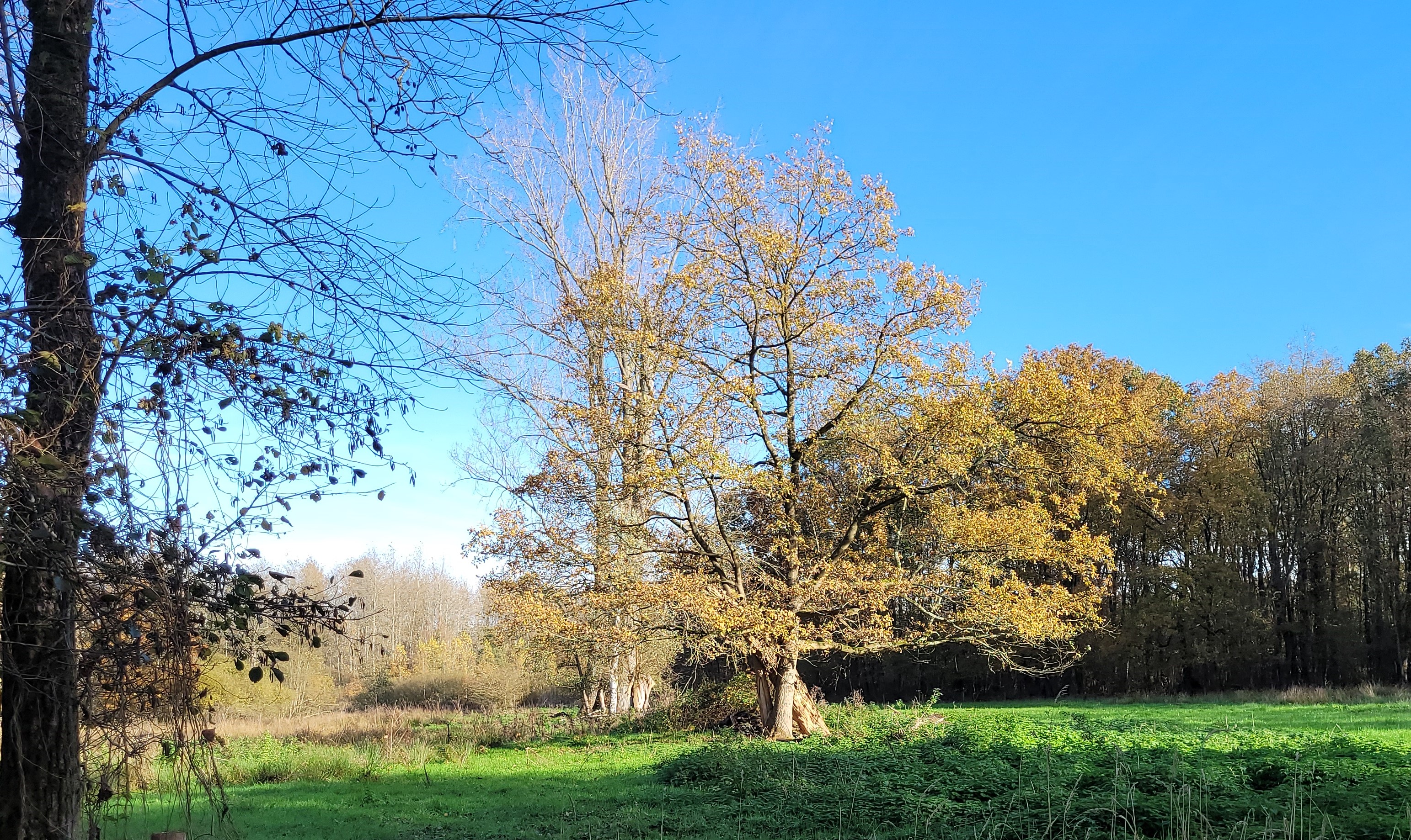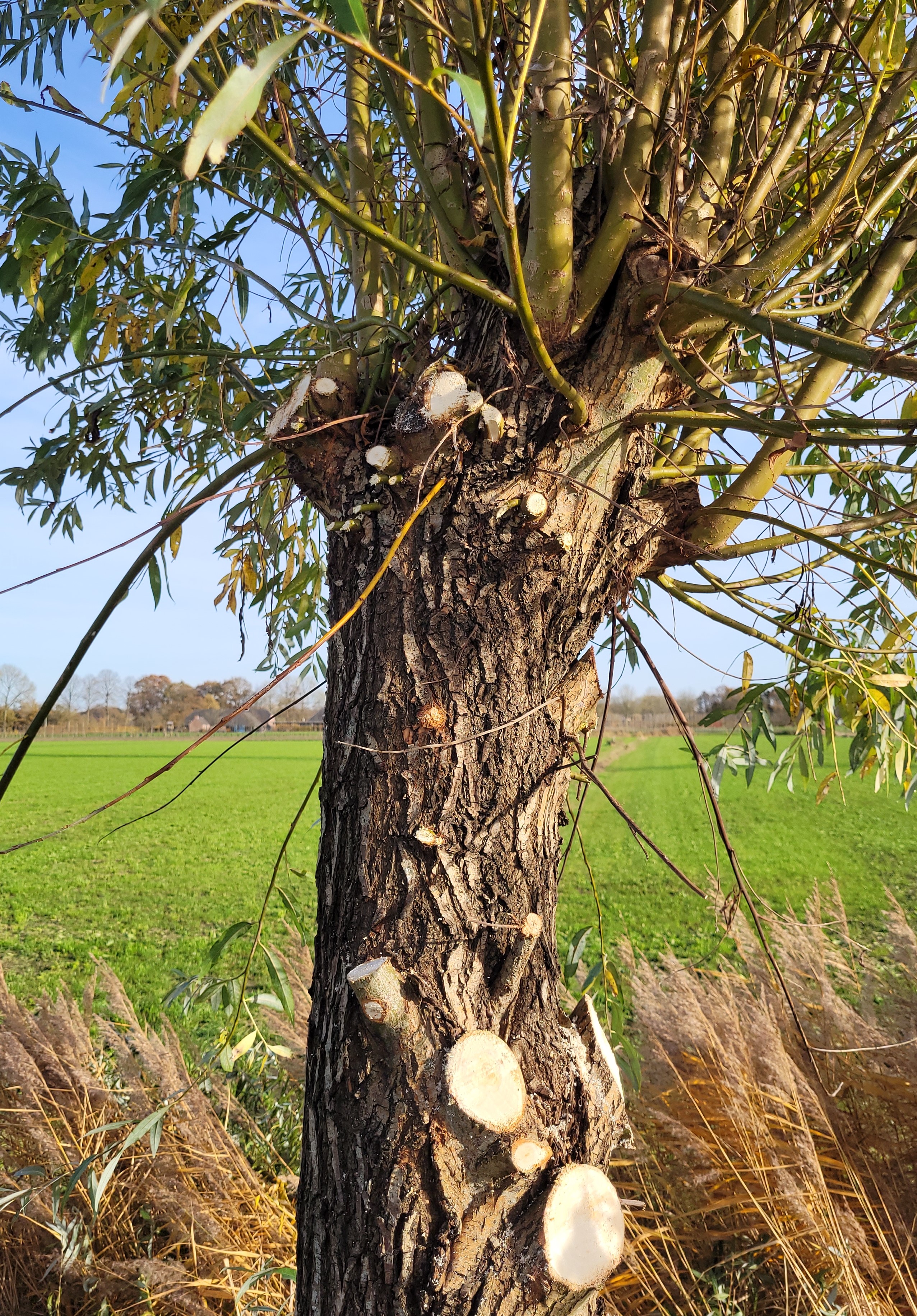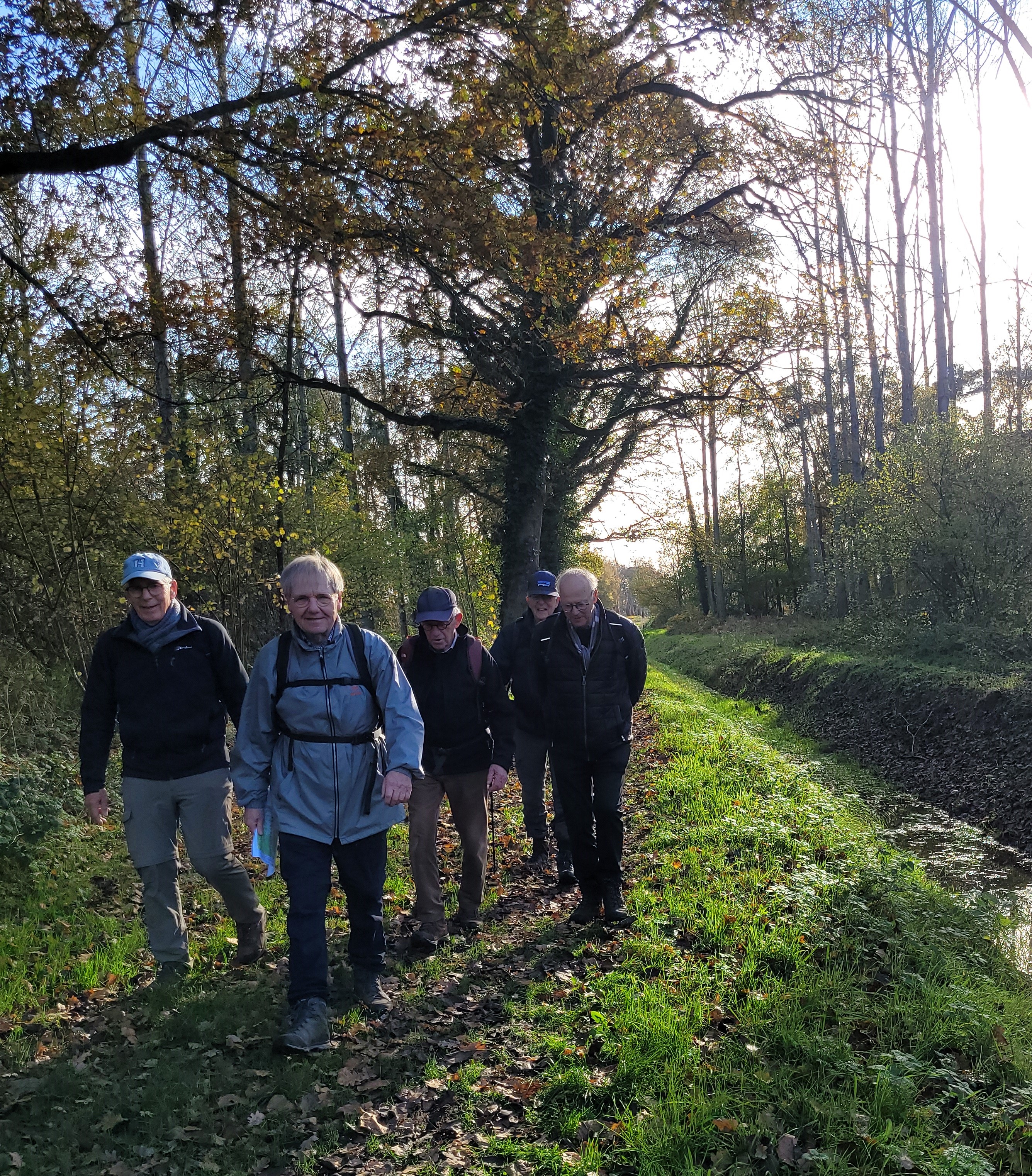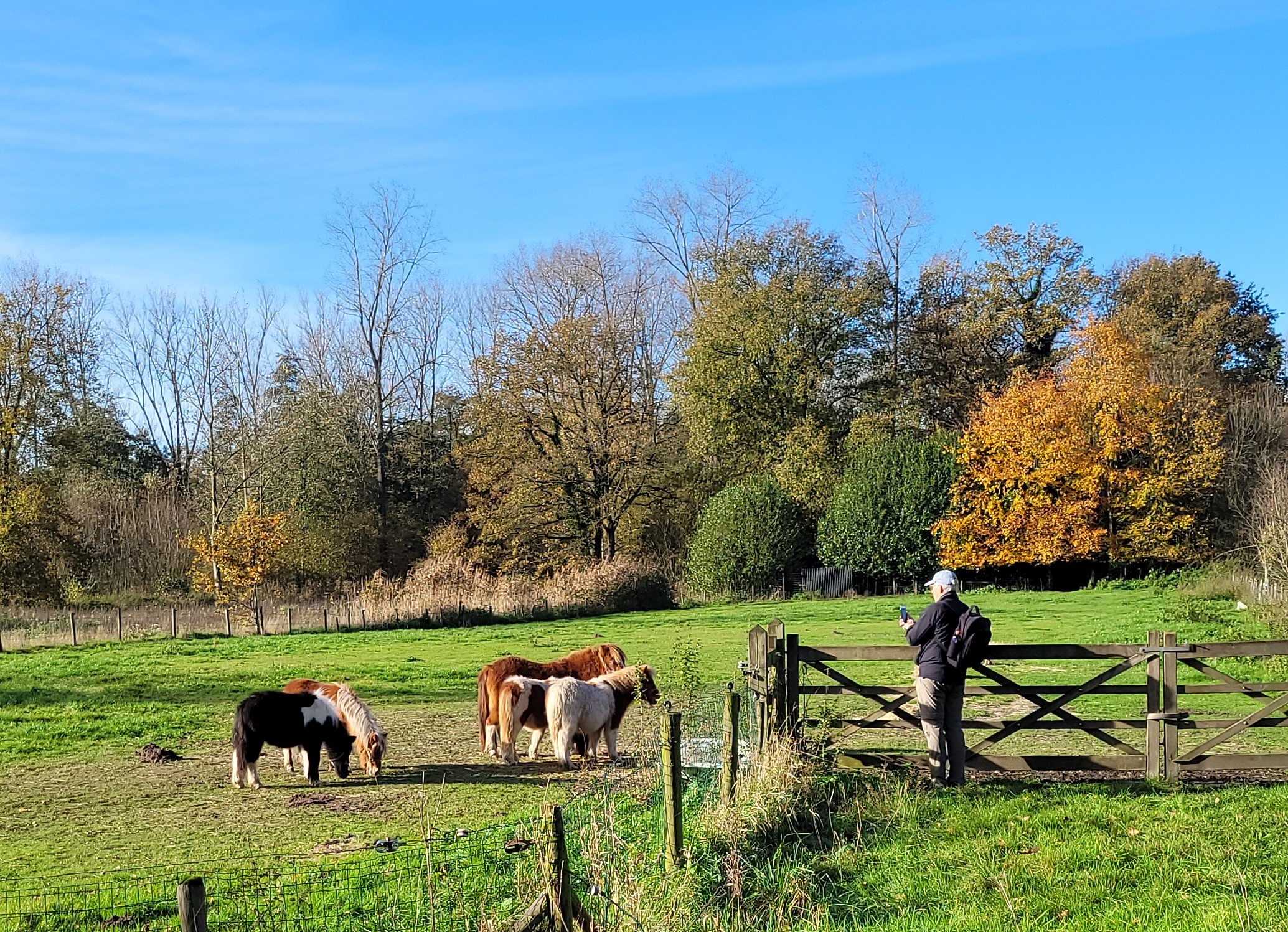 Begunstigd door het fraaie weer genoten we van het mooie Meijerijse landschap, met vele doorkijkjes en prachtige herfstkleuren. We liepen door De Mortelen en het Landgoed Heerenbeek, onderdelen van Het Groene Woud. De rietpluimen wiegden zachtjes in de weinige wind, de fotograferende paardenliefhebber werd zelf ook gefotografeerd en de gepijnigde wilg wachtte met angst en beven op het volgende jaar waarin de rest van zijn takken ongetwijfeld ook gesnoeid zal worden.