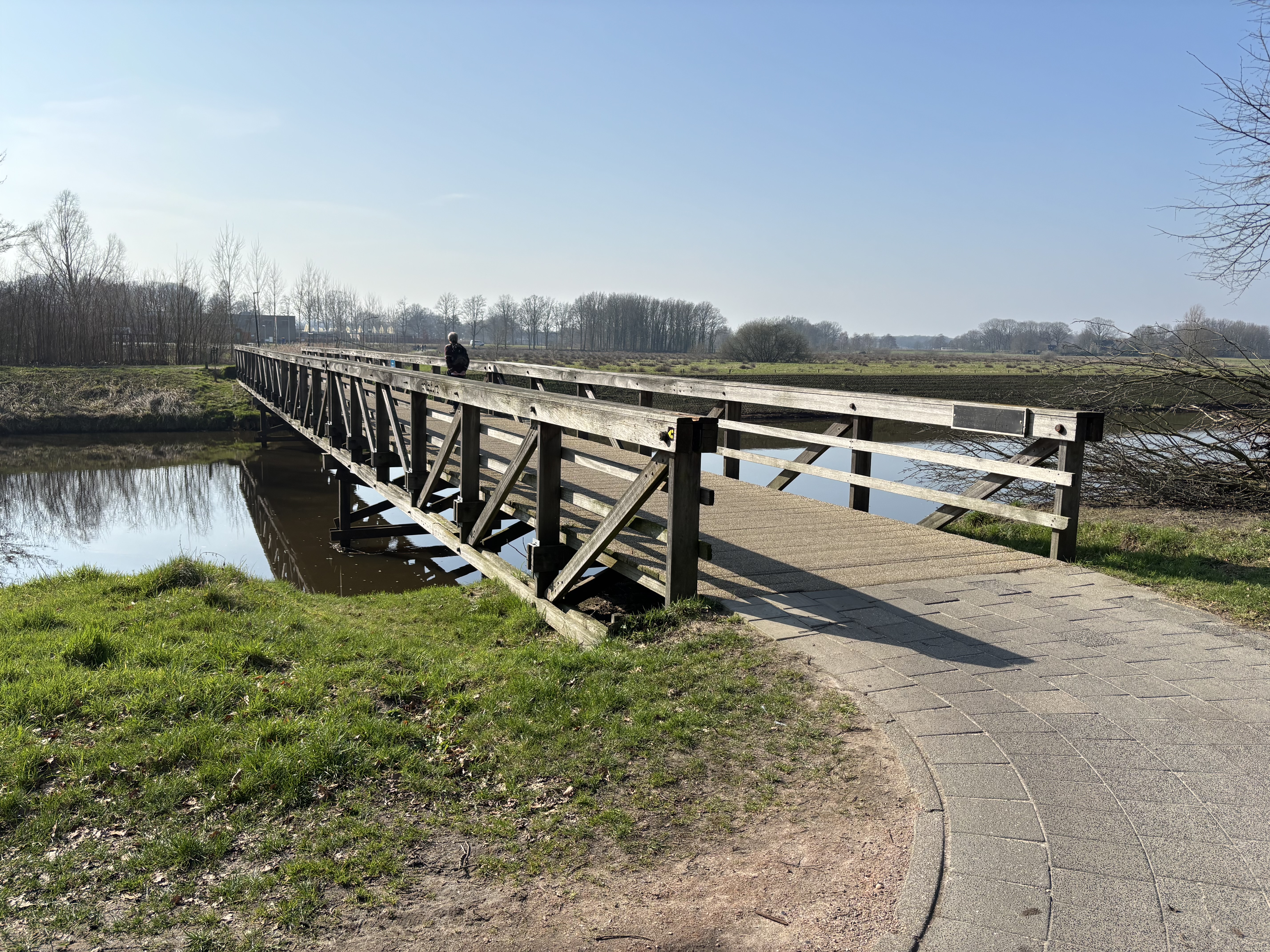 In een ruime omtrekkende beweging bereiken we Sint-Michielsgestel. Langs conferentieoord De Ruwenberg lopen we richting de Dommel om vlak voor de fiets/wandelbrug het bankje te benutten voor de lunch. Tijd om het wereldnieuws door te nemen en ons af te vragen wat heersers als Trump, Poetin, Khamenei en anderen toch beweegt om de wereld zo in brand te steken. We hebben er allerlei theorieën over en besluiten – enigszins berustend – de wandeling toch maar te hervatten. Een fraai stuk langs de Dommel richting Halder. De zon blijft bij ons.